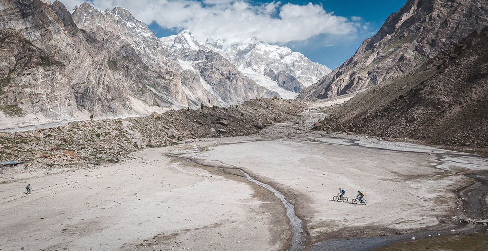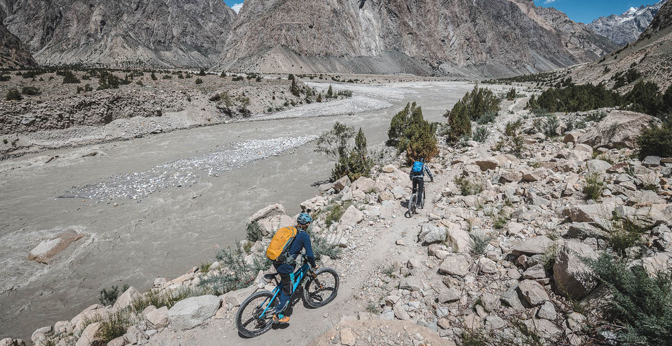Zweifelsohne gehört die Bergwelt um den Baltoro Gletscher zu den spektakulärsten Hochgebirgsarenen weltweit. Nirgends stehen mehr 7- und 8000 Meter hohe Berge auf so engem Raum. Einmalige Berggestalten wie die Trango Türme, Masherbrum, die Gasherbrums und natürlich der "Berg der Berge2 - der K2 (8611m), sind hier versammelt. Wohl jeder bergbegeisterte Mensch möchte diesen Anblick mit eigenen Augen sehen. So ging es auch mir, seit meiner Jugend schon. In einem kleinen Team haben wir uns aufgemacht das "große Karakorum Trekking" vom Bergdorf Hushe, über den 5600m hohen Gondogora La, zum Concordia Platz und anschließend den Baltoro Gletscher hinaus nach Askole, mit dem Bike zu befahren. Viele Stunden mussten wir auf dem mit Felsbrocken übersähten Gletscher schieben und tragen. 22 Stunden hat unsere längste Etappe über den vereisten, mit Fixseilen versicherten Pass, bis zum Concordia Platz gedauert. Trotz der körperlichen Strapazen hatten wir eine einmalige Zeit, welche wir nie vergessen werden. Nicht zuletzt dank dem Humor unseres Guides Isaak, der uns, wann immer wir erschöpft und ausgelaugt waren, mit einem freudigen Grinsen motiviert hat: